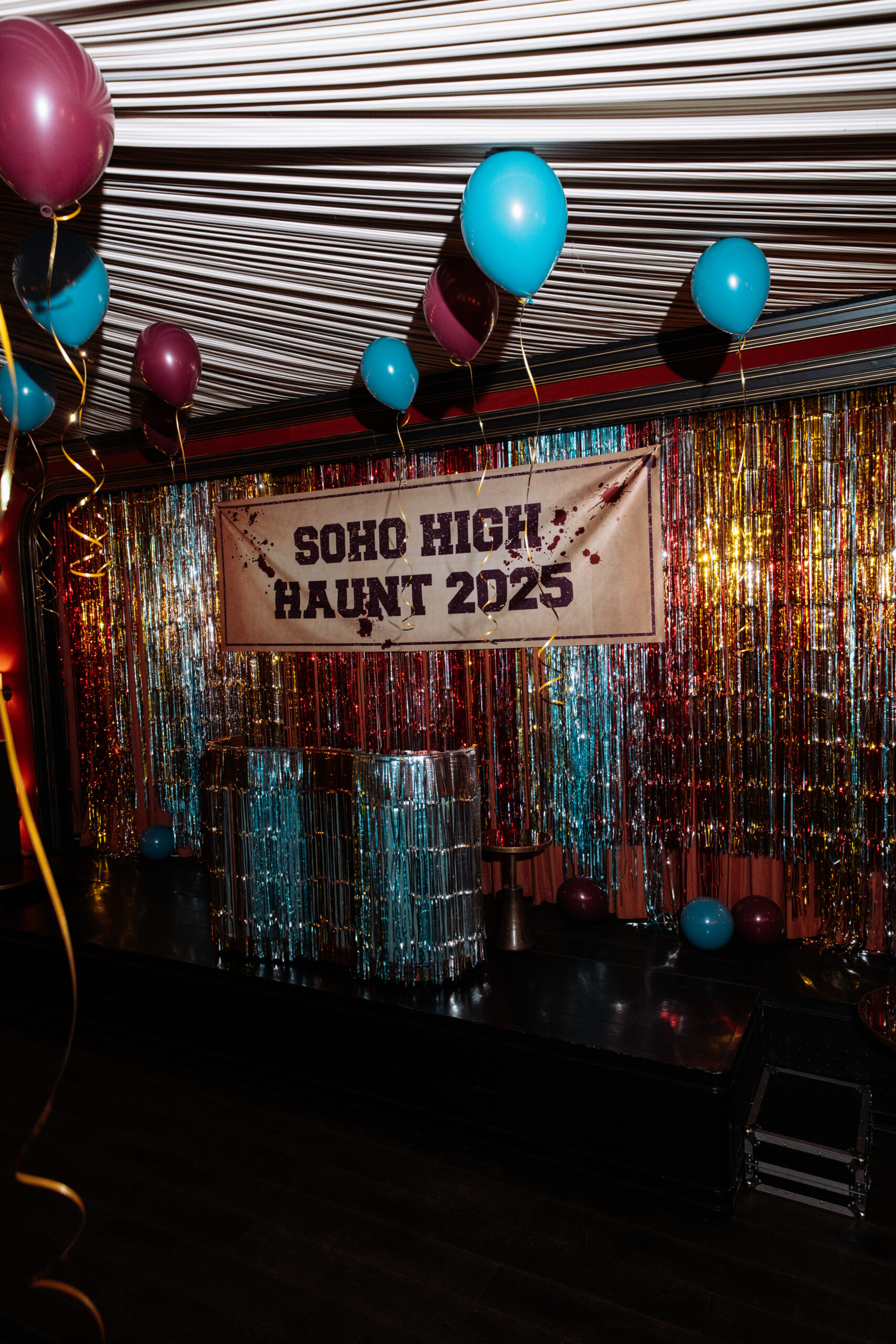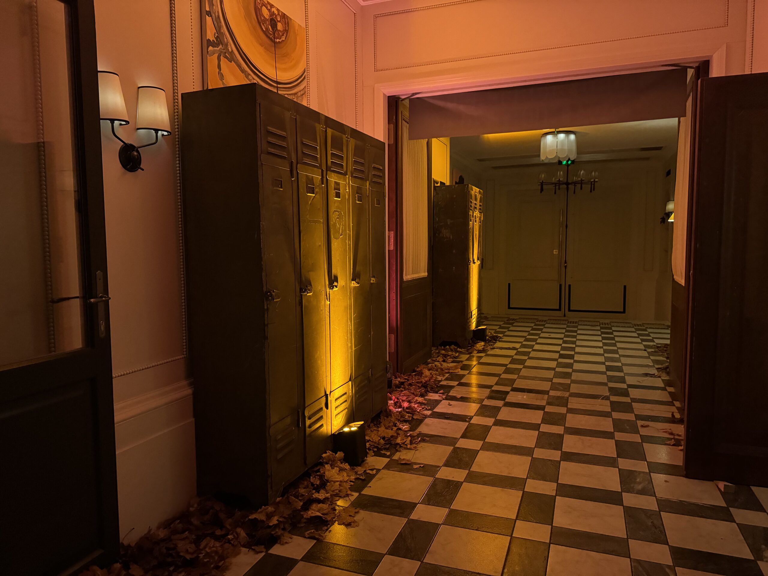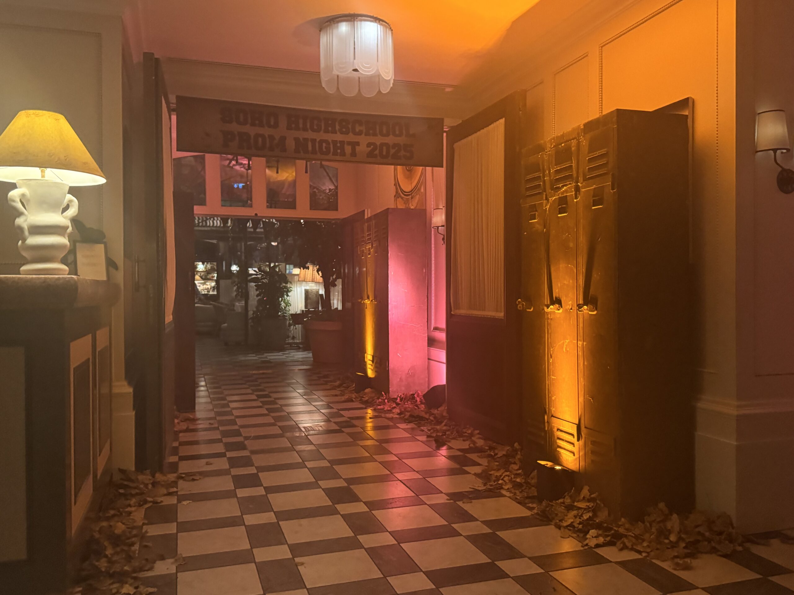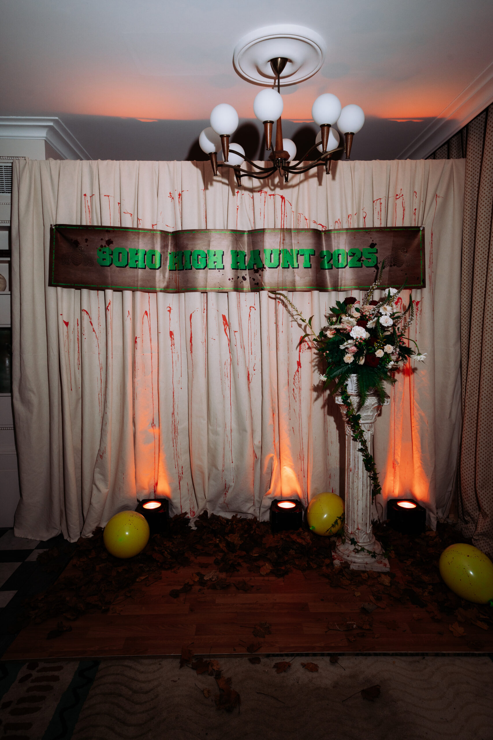 L’espace devient un décor de film d’horreur adolescent, oscillant entre glamour rétro et frisson macabre. Les invités, acteurs d’un soir, se retrouvent transportés dans une Prom Night où la fête dérape.