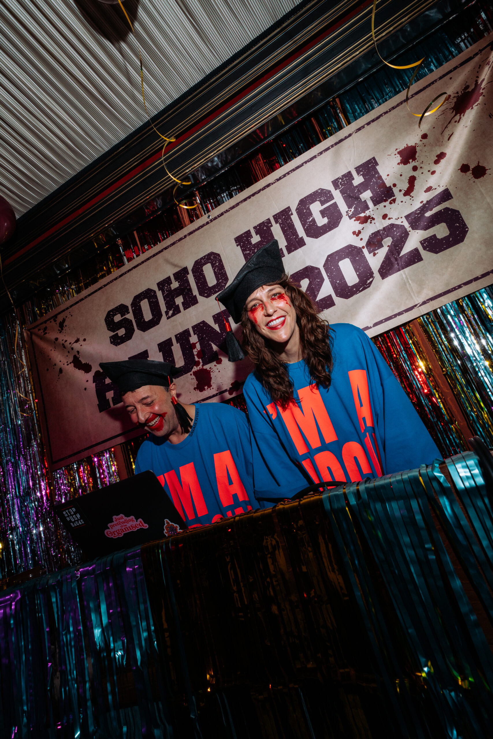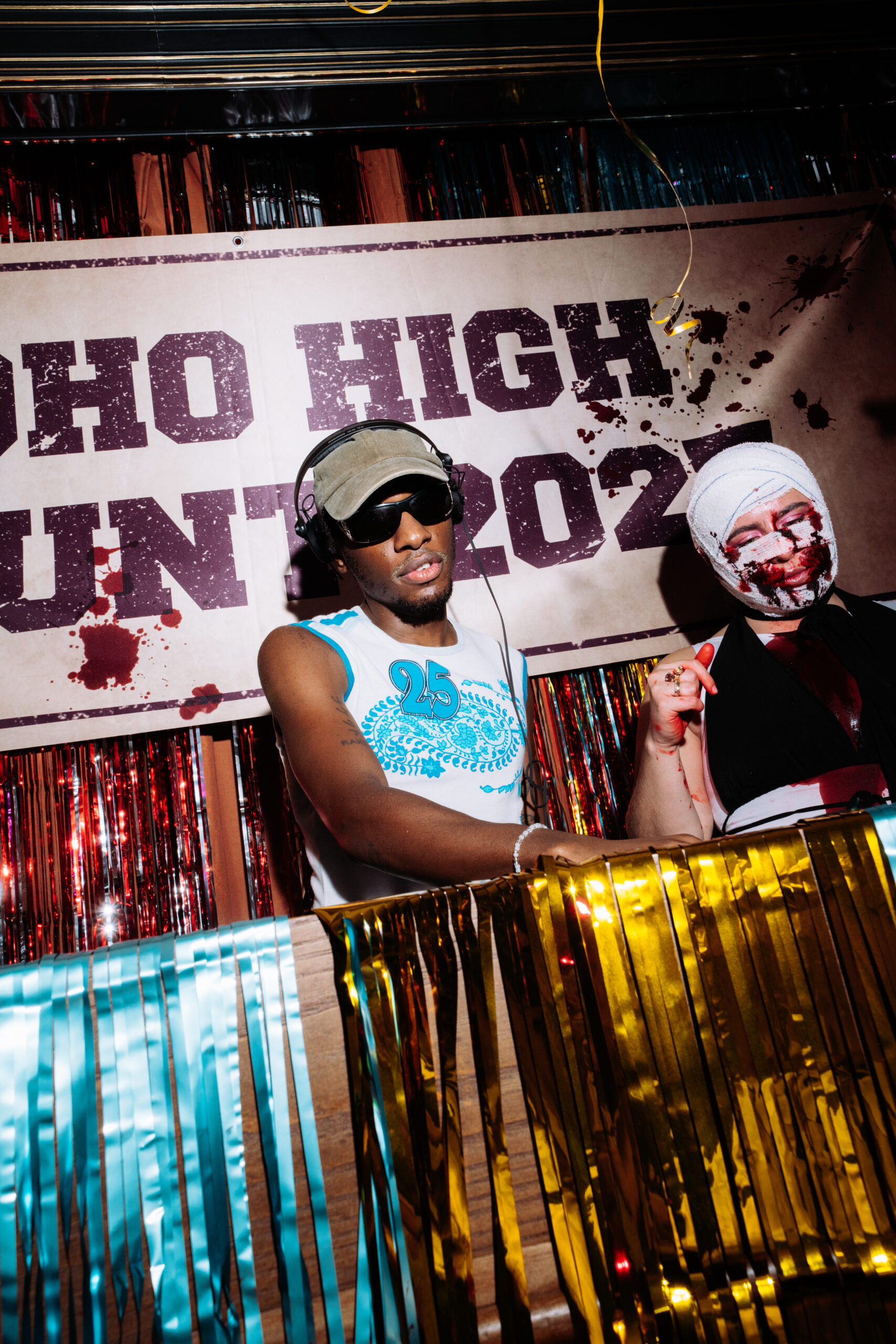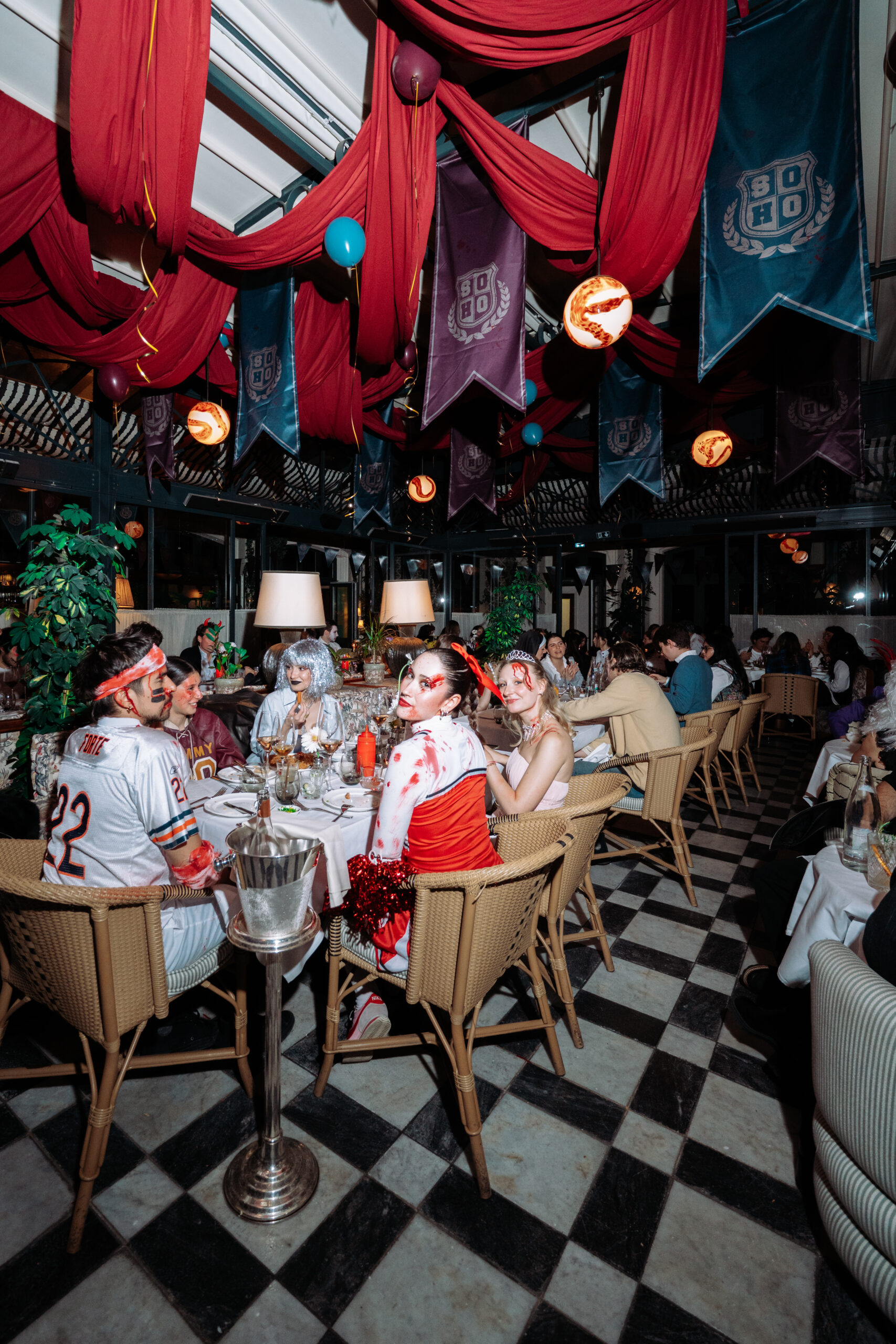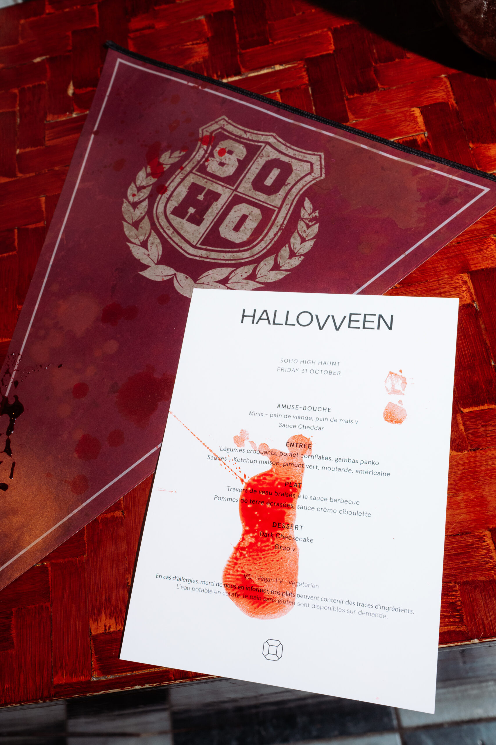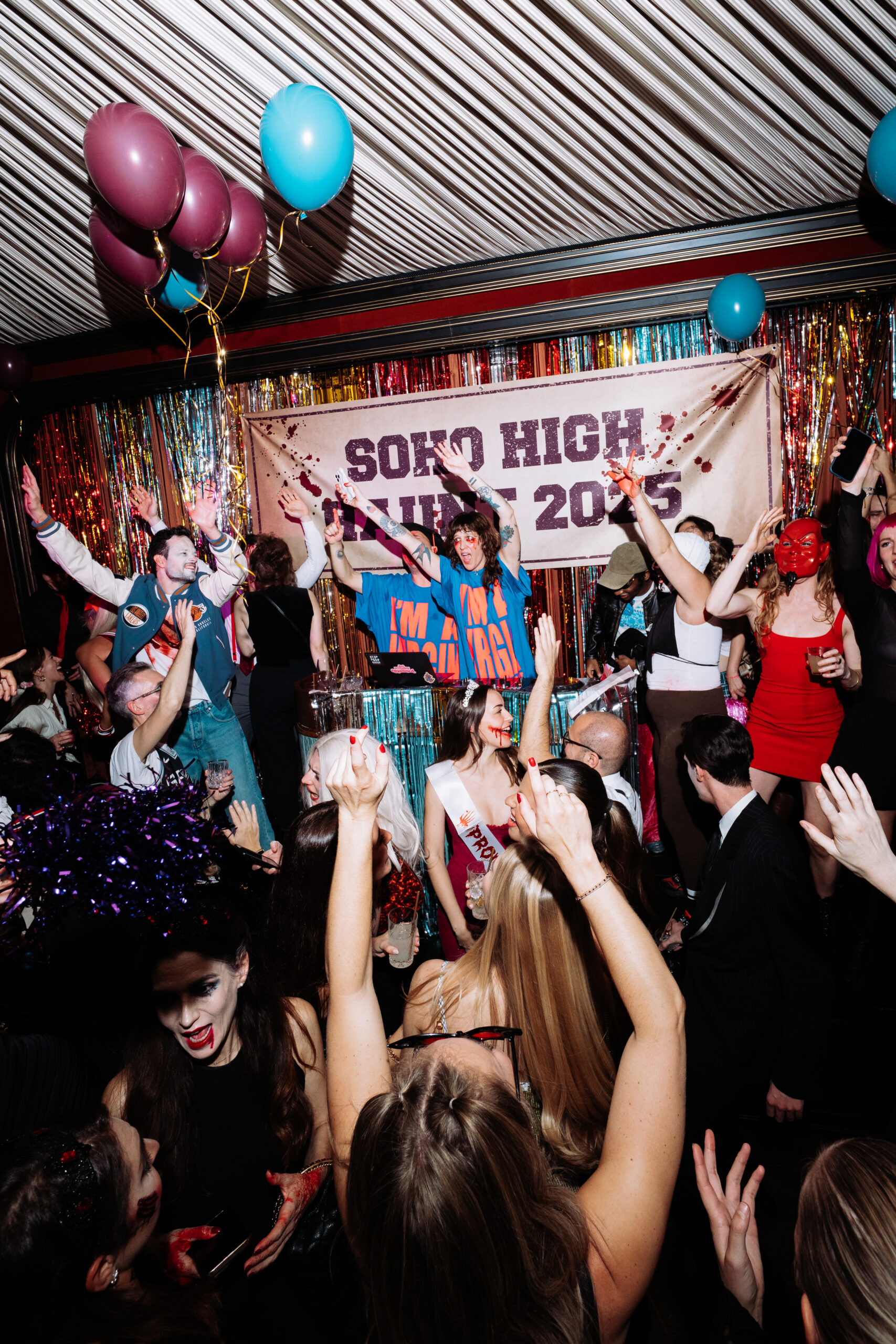 L’espace devient un décor de film d’horreur adolescent, oscillant entre glamour rétro et frisson macabre. Les invités, acteurs d’un soir, se retrouvent transportés dans une Prom Night où la fête dérape.