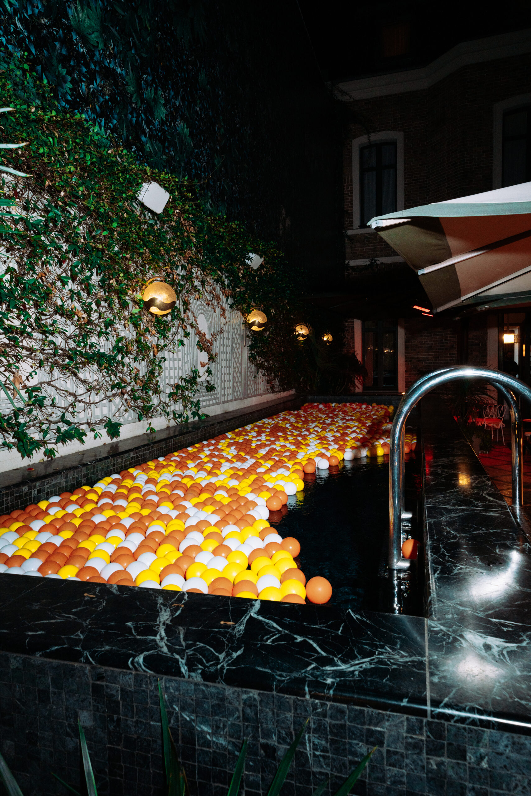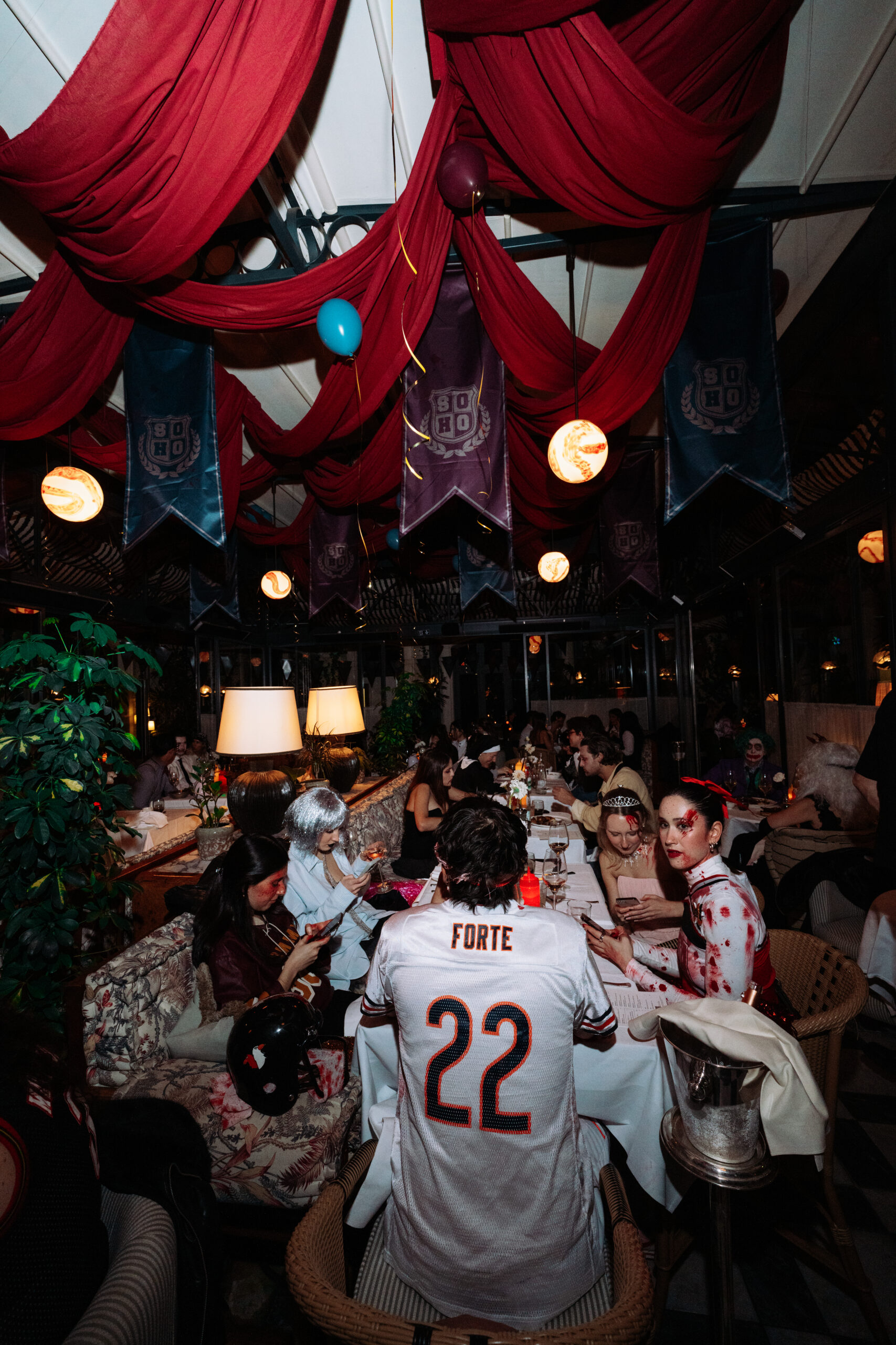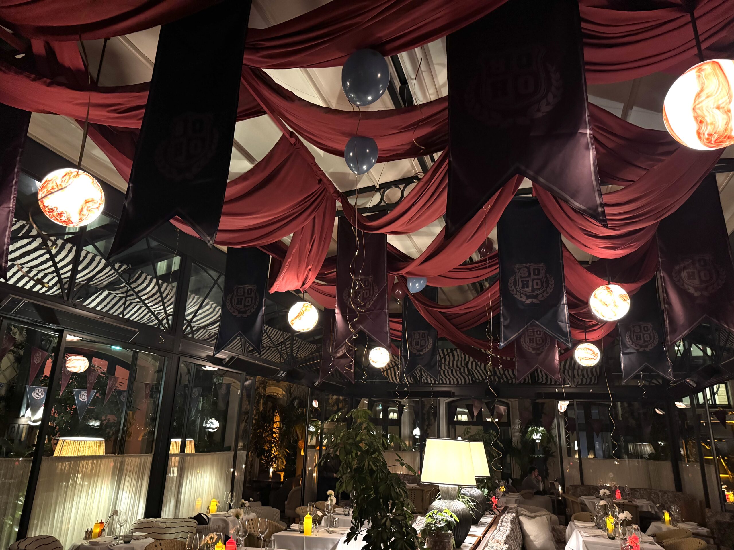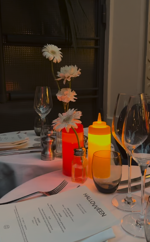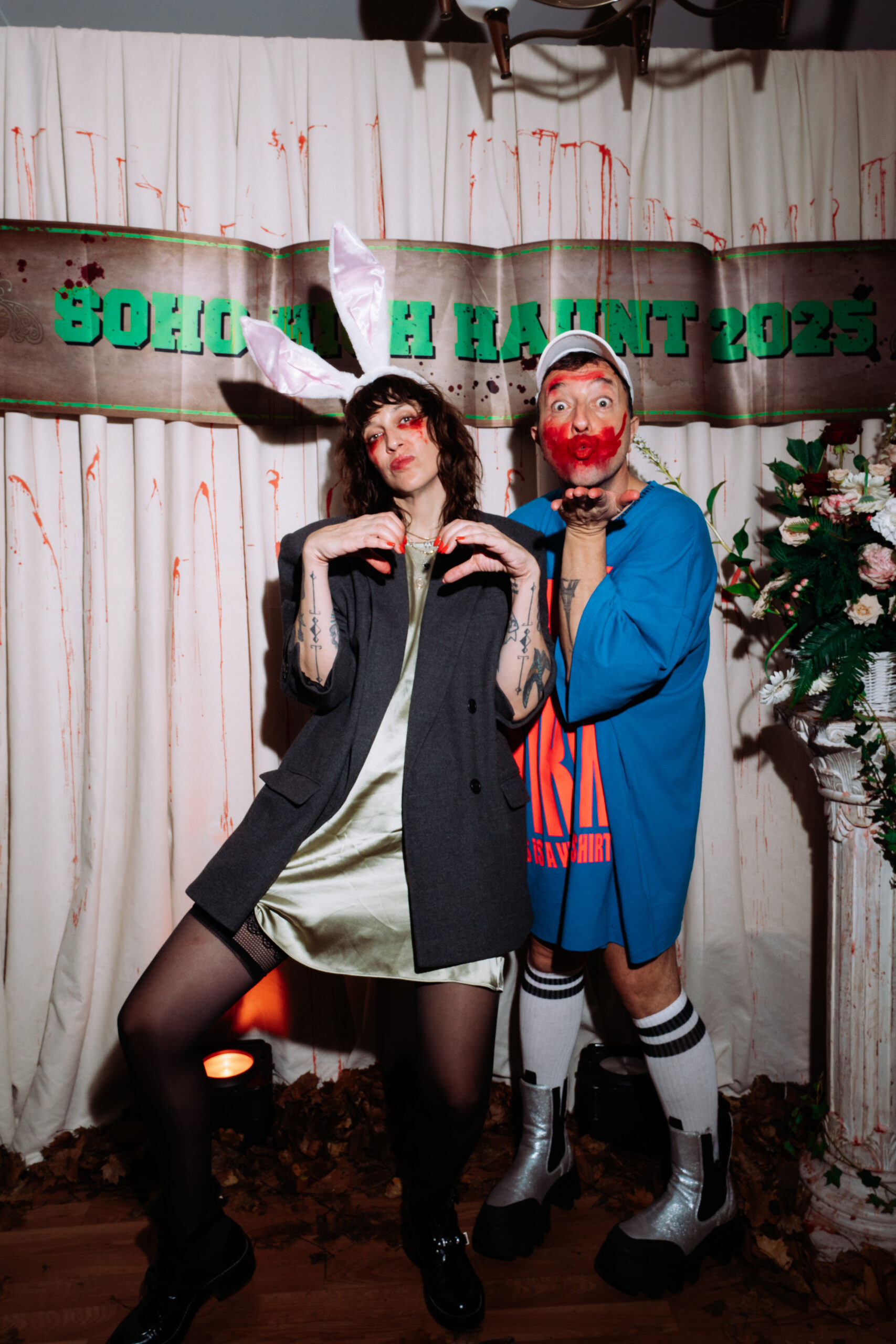 L’espace devient un décor de film d’horreur adolescent, oscillant entre glamour rétro et frisson macabre. Les invités, acteurs d’un soir, se retrouvent transportés dans une Prom Night où la fête dérape.
