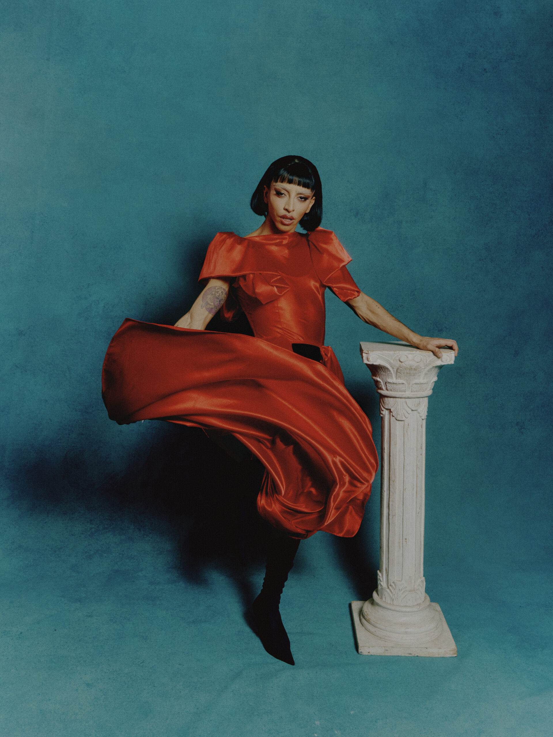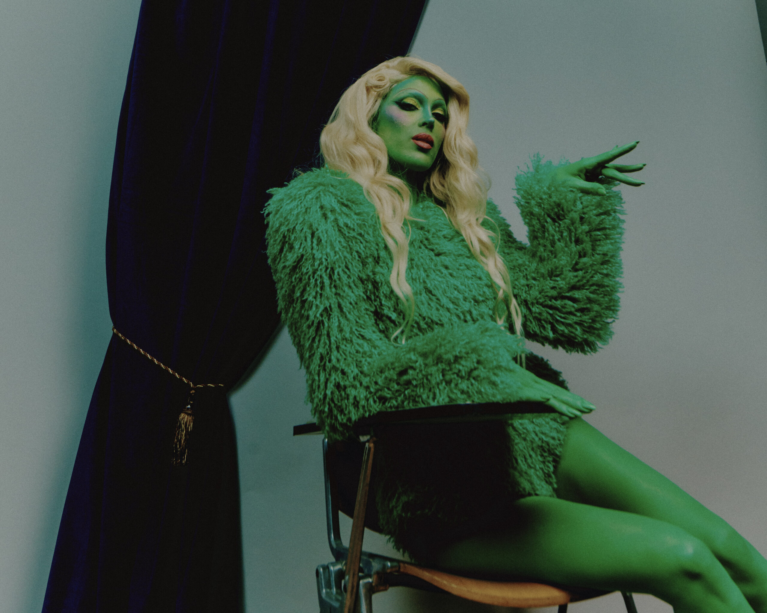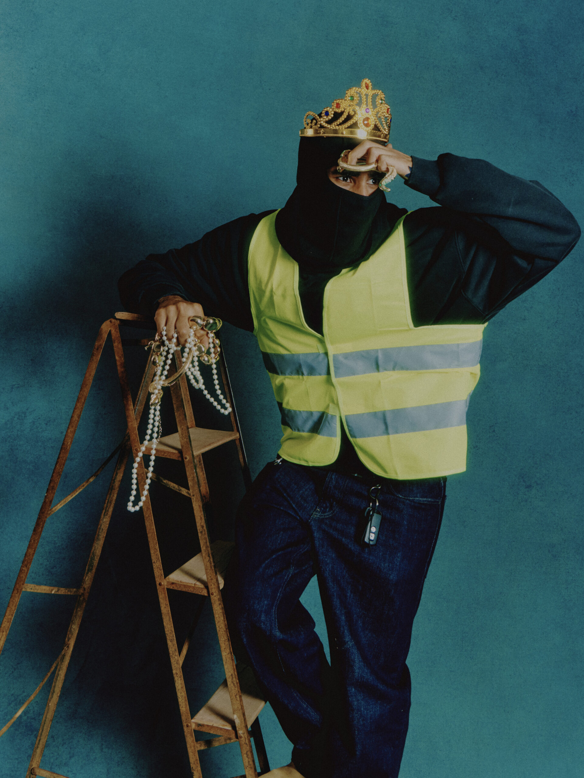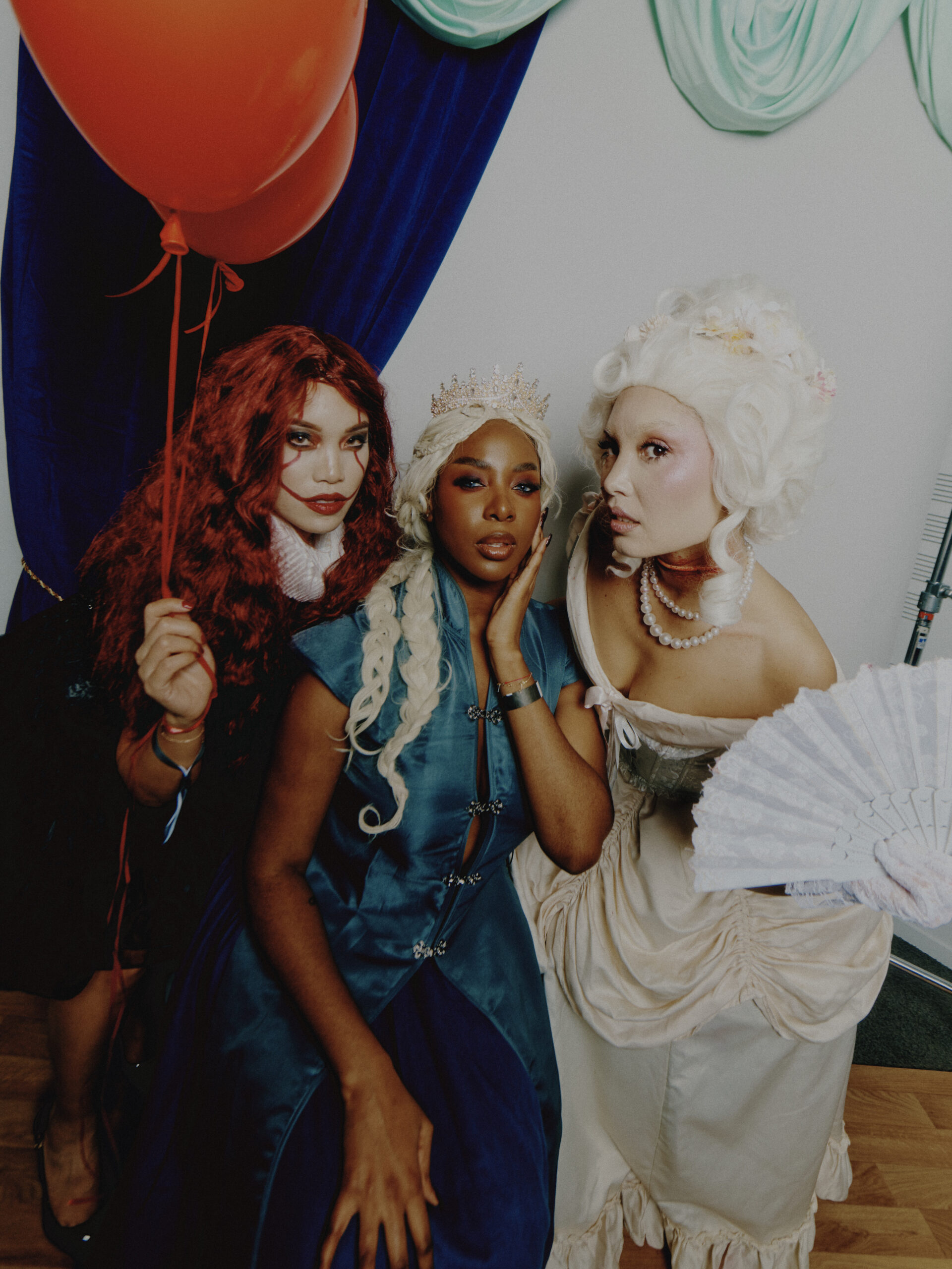 Chaque portrait devient un rôle : reines déchues, créatures mélancoliques, héros décalés. Un décor minimaliste mais chargé de symboles, pensé comme une scène de théâtre où tout peut basculer.